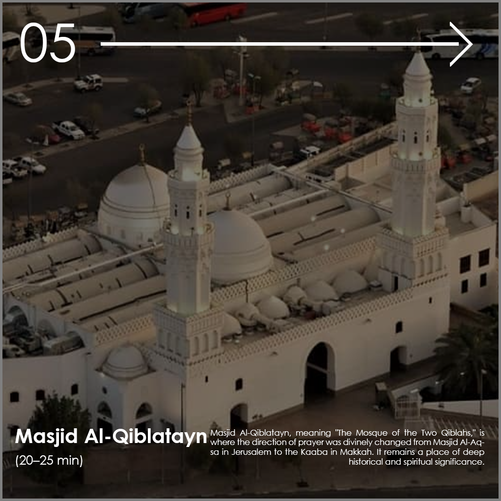 Experience the peace and history of the Prophet’s City with Muhabiya Transport’s Madinah Ziyarat Tour. Travel in comfort as we take you to the most significant Islamic sites in and around Madinah, each holding a deep spiritual connection to the life of Prophet Muhammad ? and his companions. This tour is designed to provide a comprehensive and reflective experience.