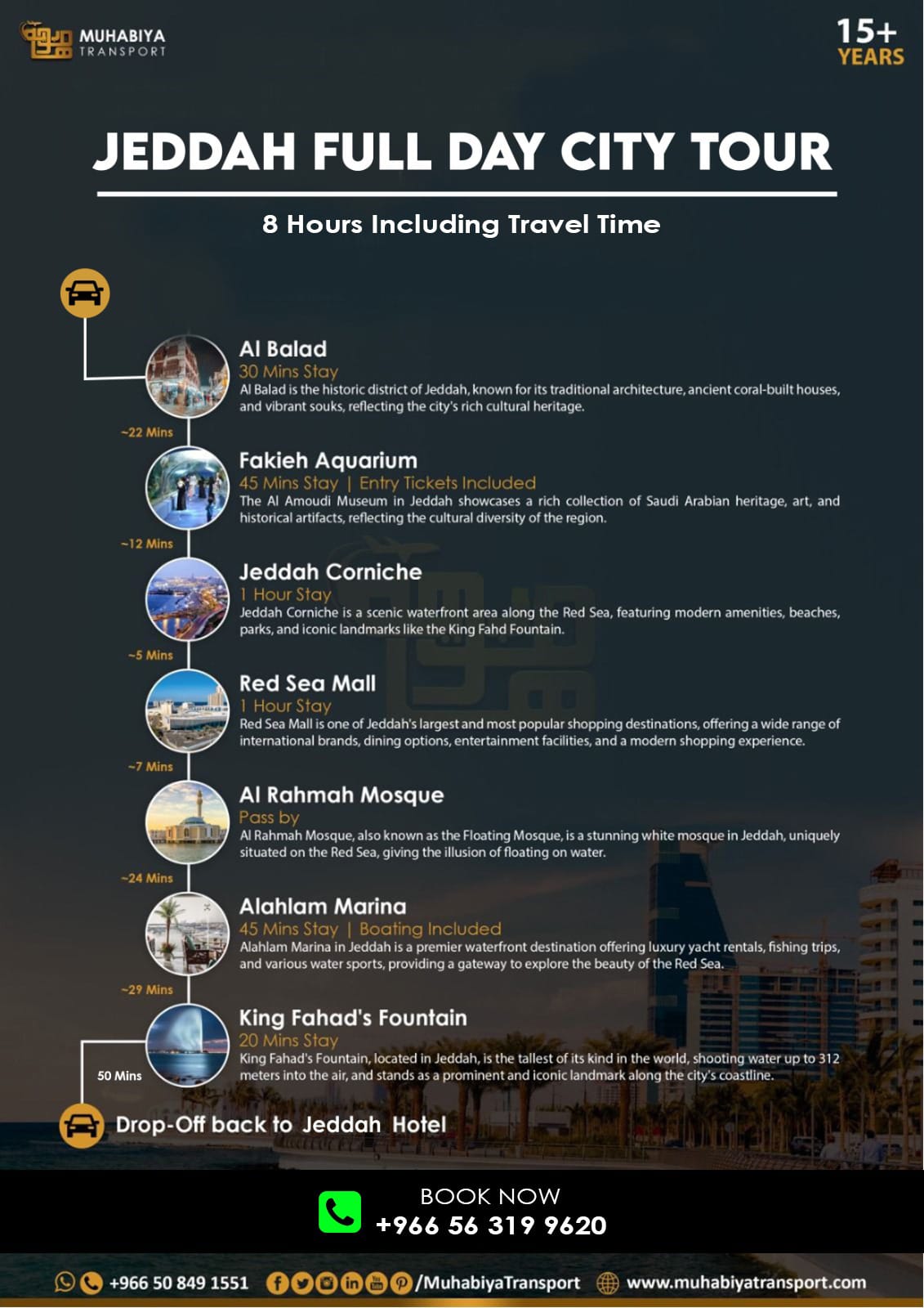 Experience hassle-free travel within Jeddah with our reliable local city transfer service. Whether you're heading to business meetings, exploring shopping districts, visiting local attractions, or simply need a ride across town, our professional drivers and comfortable vehicles ensure you reach your destination safely and on time. Enjoy a smooth, private ride with meticulous attention to punctuality and customer satisfaction, all within the vibrant city of Jeddah.